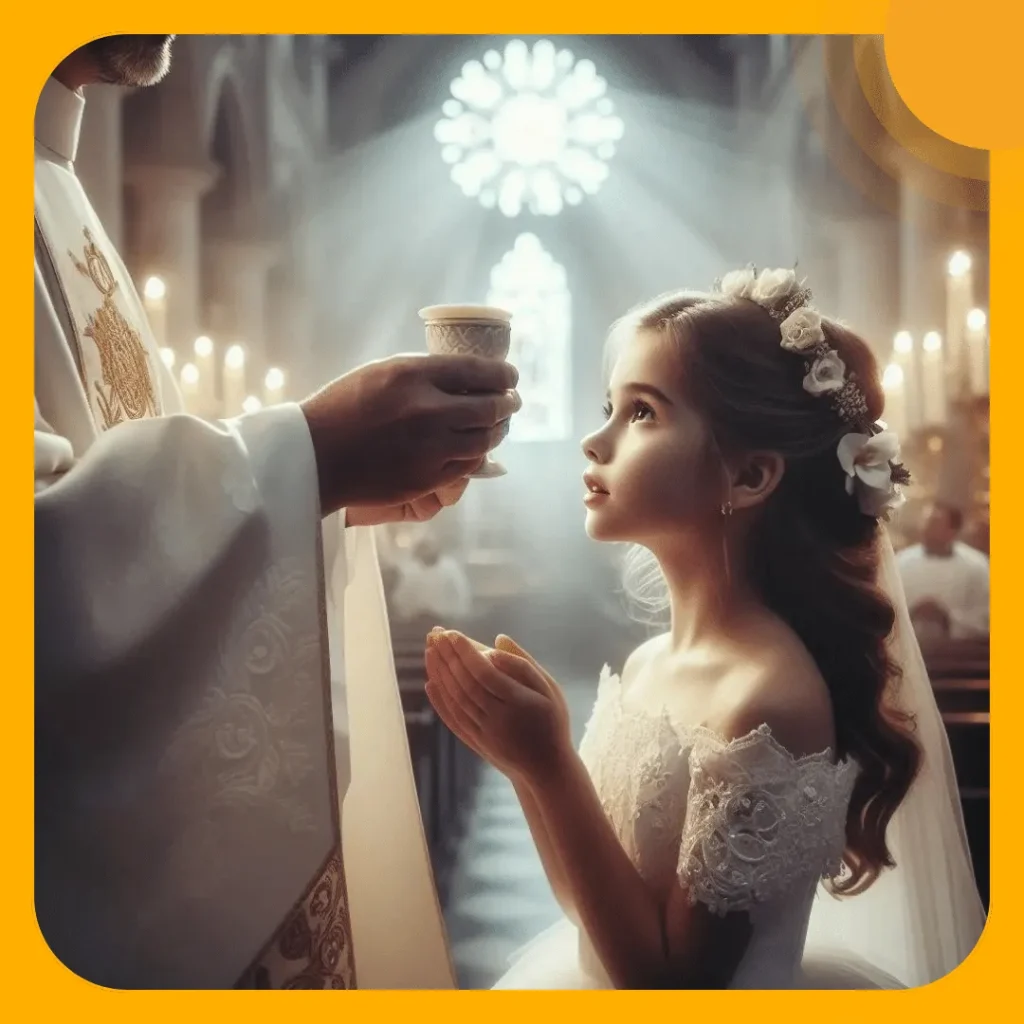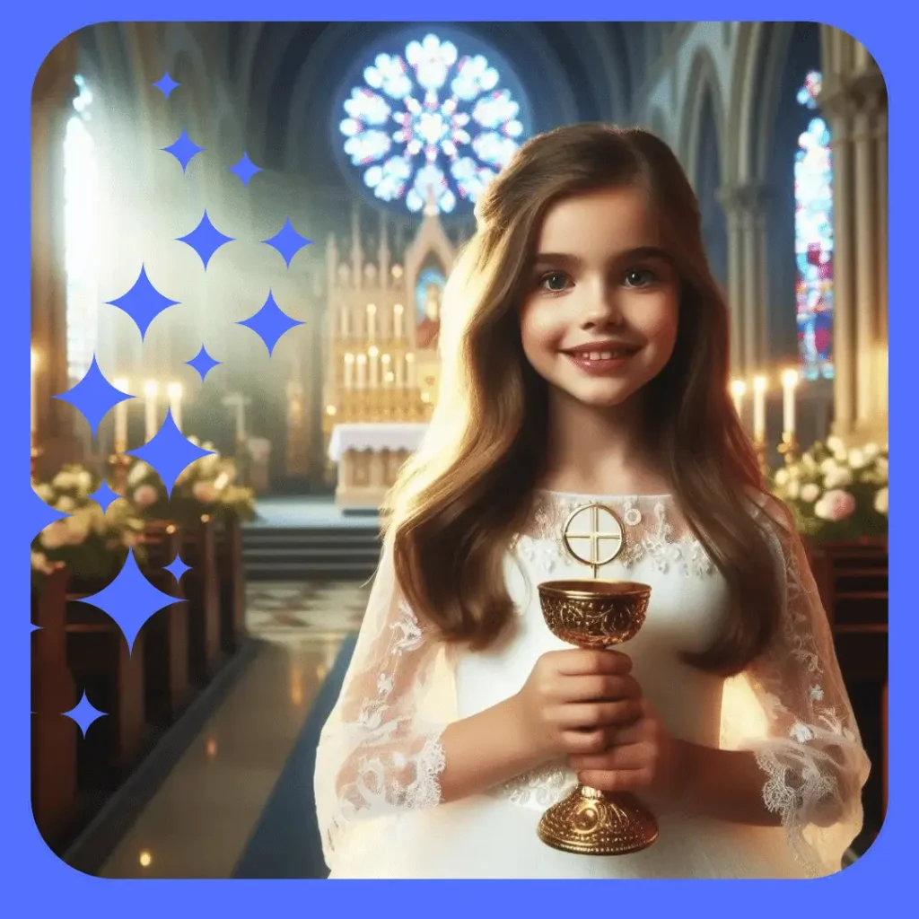 Que la luz de esta sagrada ceremonia ilumine tu vida con amor, paz y felicidad. ¡Felicitaciones en tu Primera Comunión!